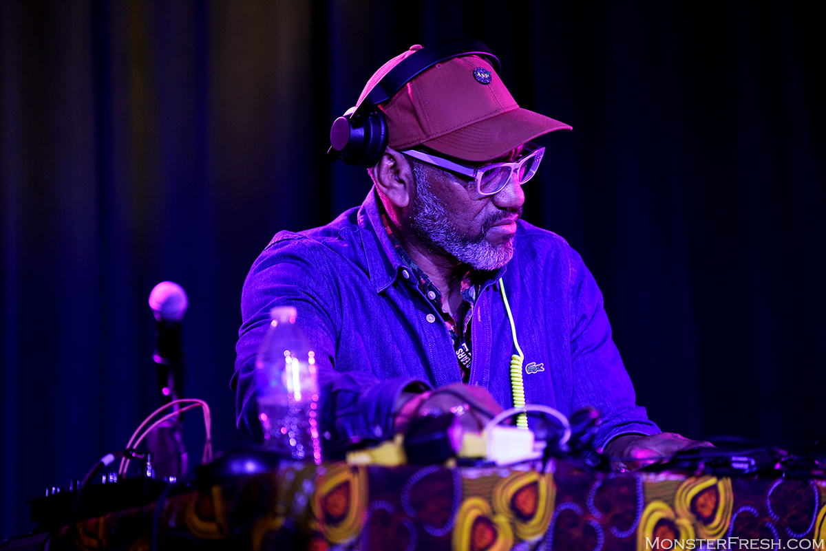 King Britt once participated in one of Amoeba‘s “What’s In My Bag?” videos and, along with John Cage, he selected titles from fellow Big Ears performers Laraaji and William Basinski. He also chose a record by Sun Ra, whom his mother knew and would take him to spend time at the Sun Ra house in Philadelphia as a child. Another selection was Talk Talk‘s Spirit Of Eden, often credited with laying the groundwork for post-rock. Watching this Jackson Terminal show, it made me think of the loose definition of that pseudo-genre being the use of traditional rock instruments to create spatial, primarily instrumental music, void of traditional rock song structures. At times, that may have been what we witnessed, and if these were all white performers, maybe that label would be suggested more. In all honesty, I’m not sure how to categorize this collaboration, and I don’t really desire to. There was jazz and elements of rock guitar, beautiful passages and crescendos, even a little “Dark Star“-esque Grateful Dead in the shimmering synth. Most importantly, it all worked and proves they belong together. It also proves the importance of the Blacktronica component at Big Ears; it’s less of a niche addition and something all-encompassing that is a brilliant representation of the ethos.
