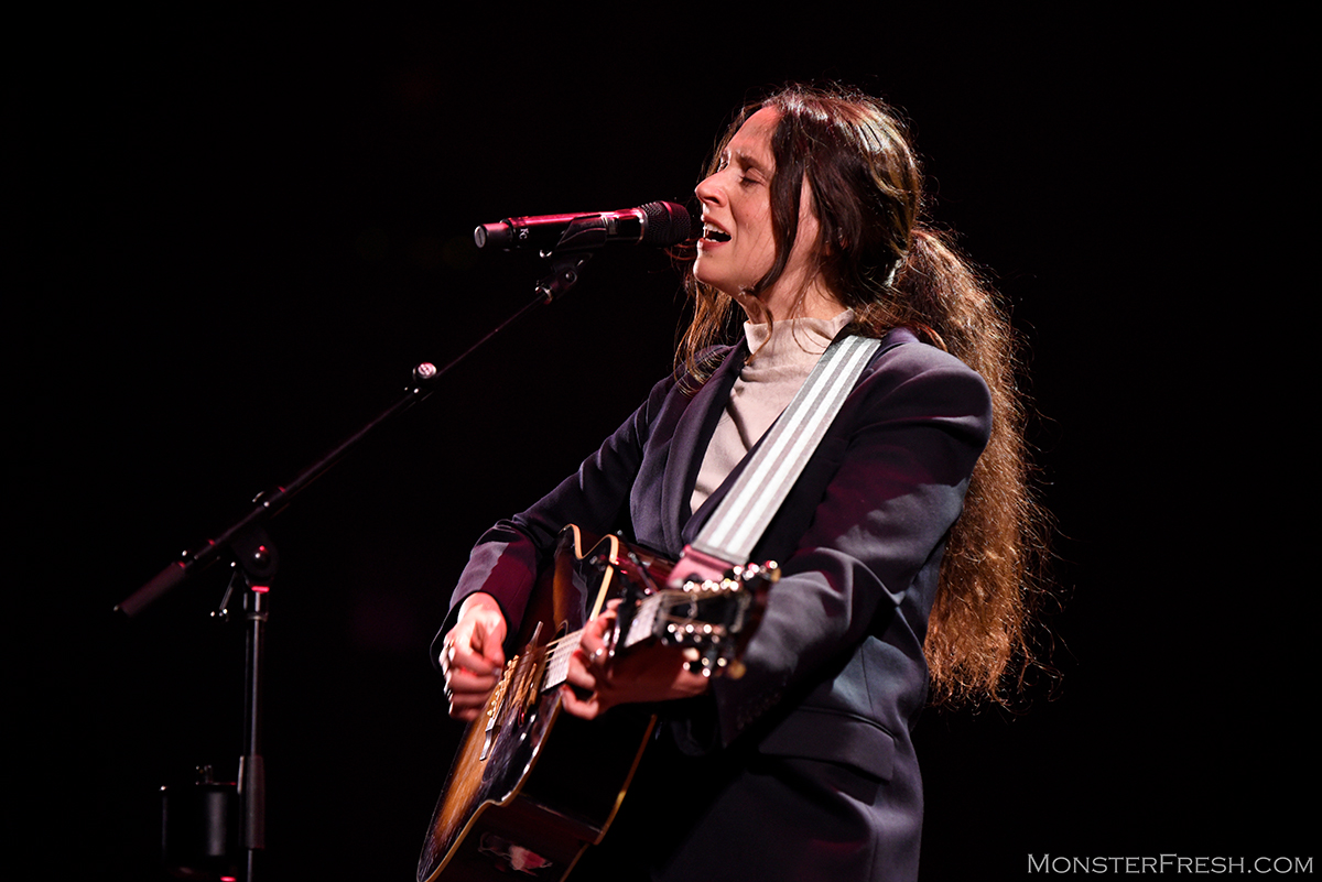 Katie Crutchfield was accompanied by only a single backing musician when she emerged. She took center stage as he positioned himself further back to her left. Sideman, Cole Berggren sat at a Nord Electro 5D with a couple of guitars on stands behind him. Crutchfield had her acoustic. She was wearing a turtleneck and a blazer with wide-leg jeans. Her hair was loosely restrained in a thick ponytail that reached the small of her back. She was an island on that massive auditorium stage. When so many artists are going bigger, forming collaborations, and bringing ensembles to the festival, the Birmingham native took the opposite route.